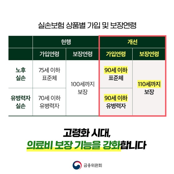 - 보장 연령 : 기존 100세 → 110세까지 확대